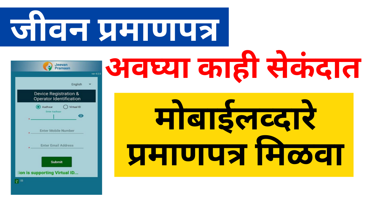 jivan pramanpatra नमस्कार मित्रांनो आज आपण जीवन प्रमाणपत्र याबद्दलची माहिती या ठिकाणी पाहणार आहोत तर मित्रांनो भारत सरकारने नागरिकांच्या निवृत्तीनंतरच्या आर्थिक सुरक्षेसाठी अनेक पेन्शन योजना सुरू केल्या आहेत या योजनेचा लाभ घेण्यासाठी पेन्शन धारकांना त्यांचे अस्तित्व सिद्ध करण्यासाठी जीवन प्रमाणपत्र हे असणे आवश्यक असते हे प्रमाणपत्र आता पूर्णपणे डिजिटल स्वरूपात उपलब्ध असल्यामुळे प्रक्रिया अगदी सोपी आणि जलद आणि त्रास मुक्त झालेली आहे.जीवन प्रमाणपत्र हे डिजिटल लाईफ सर्टिफिकेट असून जे एखाद्या पेन्शन धारकांच्या अस्तित्वाचा पुरावा म्हणून वापरले जाते हे प्रमाणपत्र सरकारच्या आधार आधारित बायोमेट्रिक प्रणाली द्वारे जारी केलेली असते यामुळे पूर्वी प्रमाणे बँकेत किंवा कार्यालयात जाऊन प्रमाणपत्र सादर करणे गरजेचे राहत नाही.